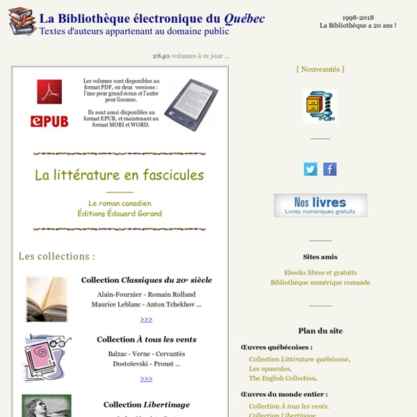 Bibliothèque numérique romande propose de nombreux ebooks à télécharger gratuitement plus de 460 aux format pdf epub mobi doc html. Télécharger ebook livres romans en epub pdf gratuit. Bibliothèque électronique du québec.