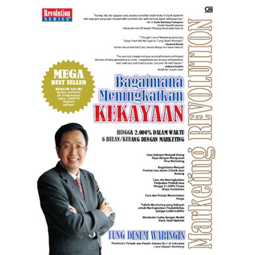 Read this book using google play books app on your pc android ios devices. Download for offline reading highlight bookmark or take notes while you read marketing revolution sc. Di dalam buku marketing revolution tung desem waringin ada beberapa hal penting yang bisa anda petik nilainya.