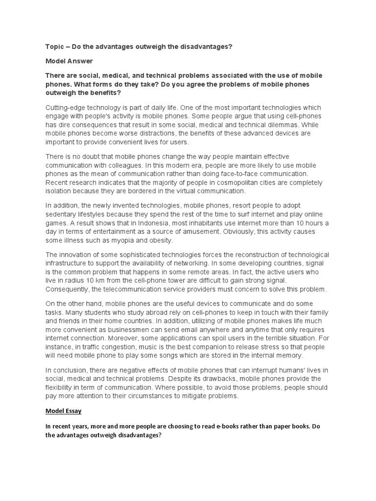Do the advantages outweigh disadvantages. However the problem arises some people suggest that e books can replace paper books altogether while some people thinking that e books destroy the feeling of reading and they are not good for our health and so on. The feel of paper.
